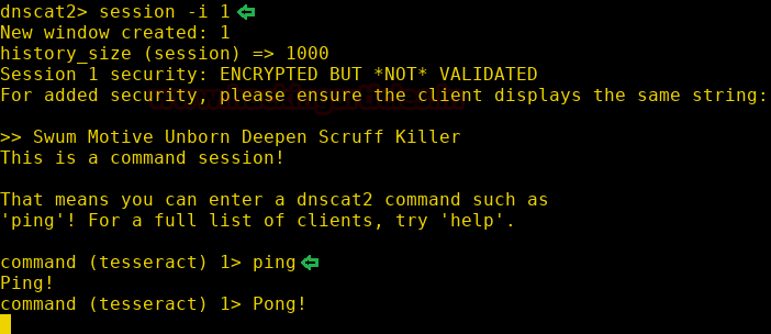 As you can access the session now, use the word ‘ping’ to ping the target and if it replies ‘Pong!’ then you ping is successful.