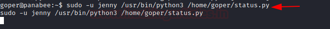 sudo -u jenny /usr/bin/python3 /home/goper/status.py
