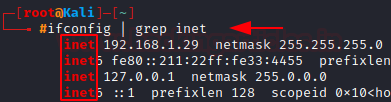 Here we use grep just to get the IP address of our machine, instead of all the other information that comes when running the ifconfigcommand. (We’ll touch on the ifconfig common in the later section)