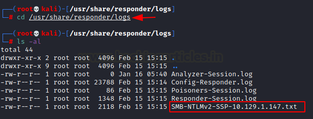 To crack those hashes, we went to check the responder logs located at the /usr/share/responder/logs.