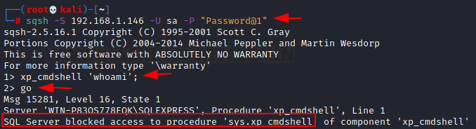sqsh -S 192.168.1.146 -U sa -P "Password@1"