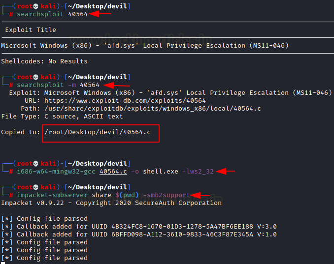 We start the impacket smbserver utility and the smb share folder will configure under the name “share”.Follow the below command