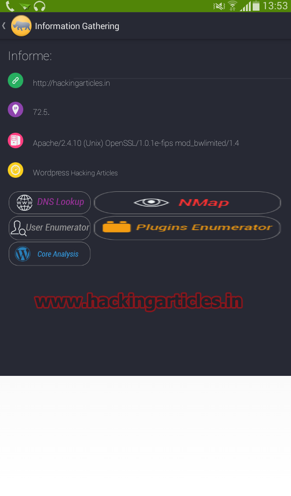 Nipper: The First Tool Web vulnerability scanner, In Android environment (developing iOS version), this vulnerability scanner was focused for most used CMS (WordPress, Drupal, Joomla Blogger.).In its first version Nipper has 10 different modules, to collect information about a specific URL. Its interface has been designed so that only some "hints" in its interface extraerías much of their information.