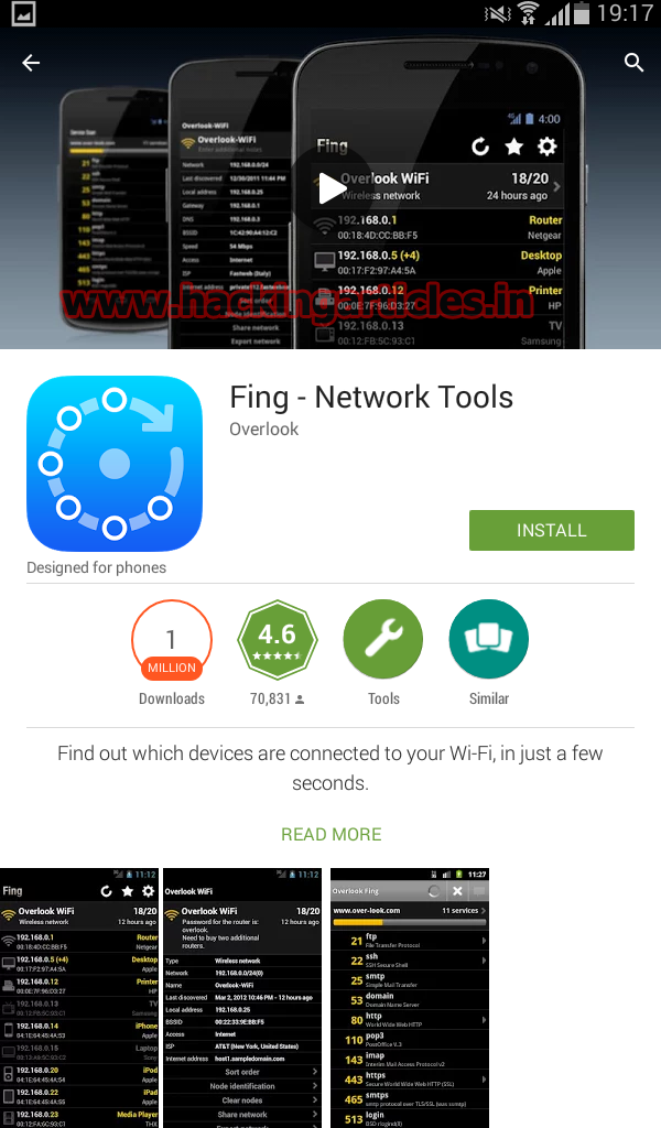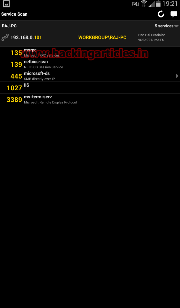 $ 0 0 Open the play store and search for fing- network tools app.Install and run it.A window showing all the connected PC’s and mobiles in the network will appearClick on desired IP and now you can see MAC address and net bios name of the victim.You can also see running services in victim’s mobile or pc.