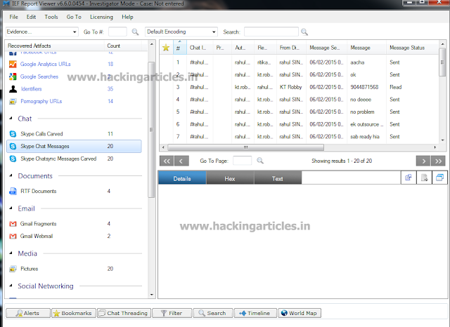 By selecting Skype Chat Message, it will show the Message and identifier.