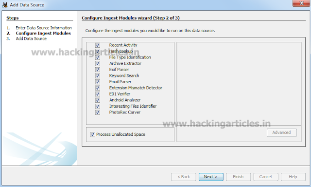 In Step 2. Configure ingest Modules I have chosen all the modules as I am looking for complete information on evidence device or disk or system etc. and click next to proceed further.
