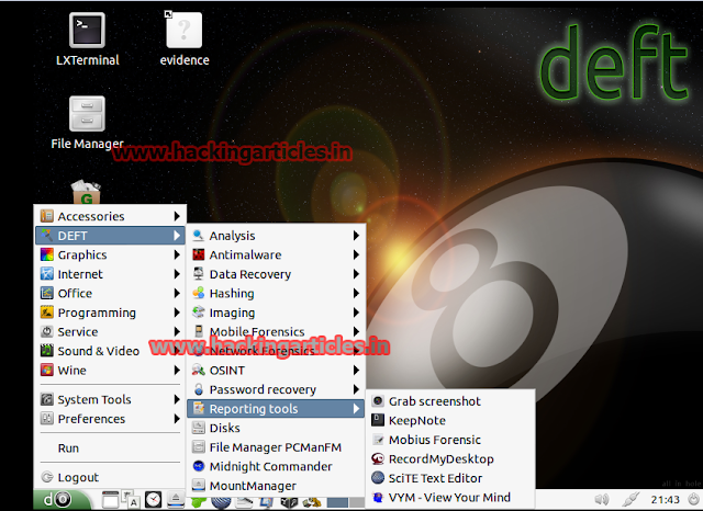 DEFT (acronym for Digital Evidence & Forensics Toolkit) is a distribution made for Computer Forensics, with the purpose of running live on systems without tampering or corrupting devices (hard disks, pen drives, etc…) connected to the PC where the boot process takes place.