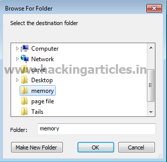 A new window will pop up. Click on browse button to select destination path. Select the option Include Pagefile& click on Capture Memory.