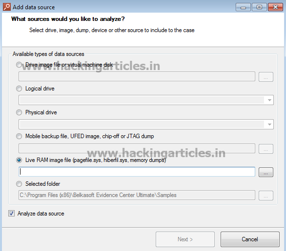 Now to analyze the Live RAM image file, we will use Belkasoft Evidence Center.