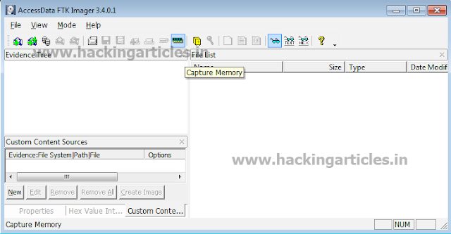 First of all download Access Data FTK Imager from hereso to capture the memory dump, click on capture memory option.