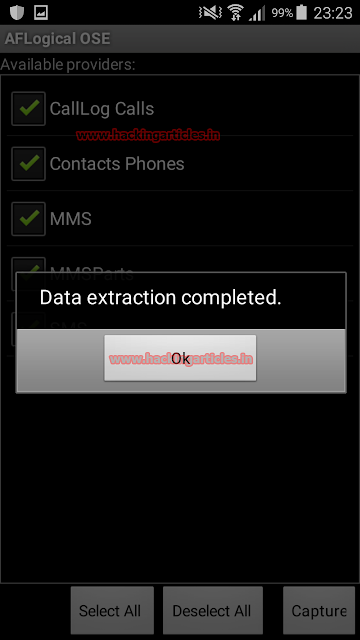 ON your mobile screen you will see couple of options like Call log, MMS etc, select the option which you want to extract and then click on Capture. (I have selected all the options as you can see below ).