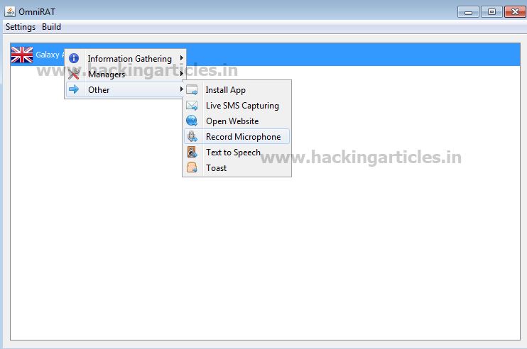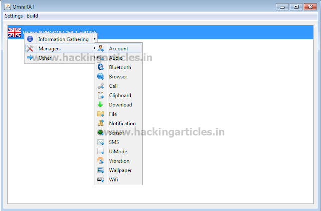 Now Right click on Galaxy Alpha and click on Information Gathering Option. It will show a list of activities to get complete information about the various activities performed on that Android.