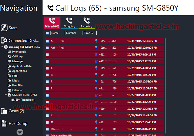 Now it will generate a report with all the details such as Phone book, Call logs, messages, Files etc.