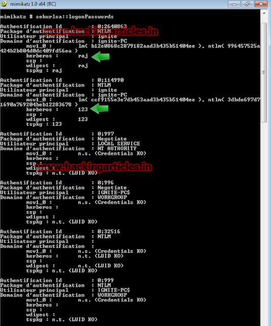 sekurlsa::logonPasswords