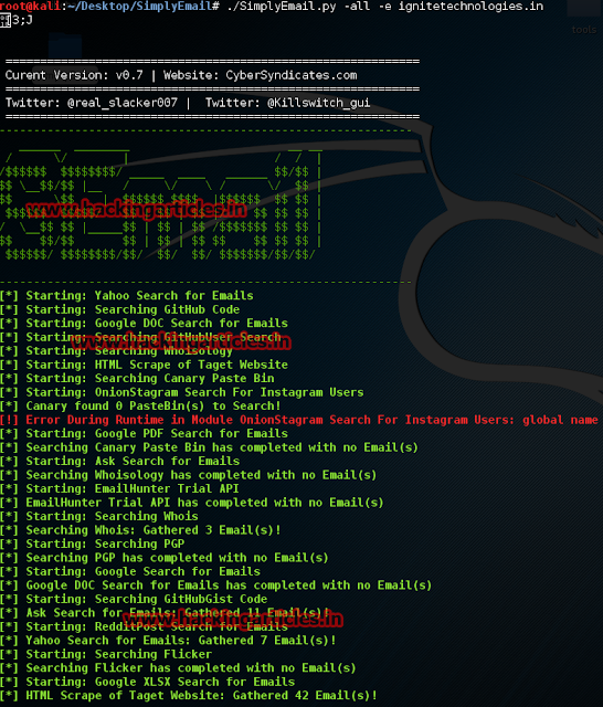./SimplyEmail.py -all -e ignitetechnologies.in