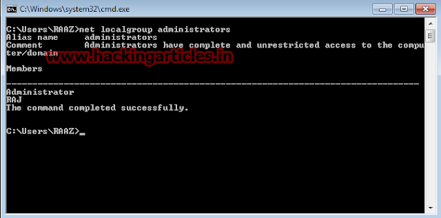 Now again type net localgroup administrators, here you can see my user RAAZ is also a member of administrator.