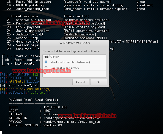 You can see lots of attacking option choose 21 Windows.exe payloads