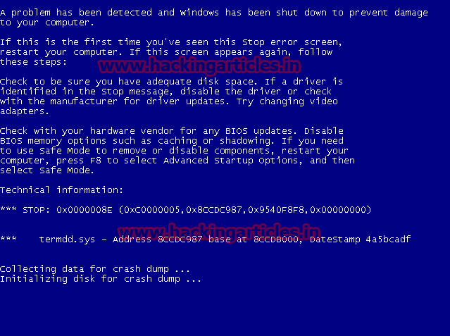 After that choose option 4, “RDP use after free –Denial of Service” and Enter