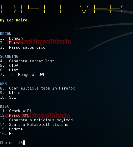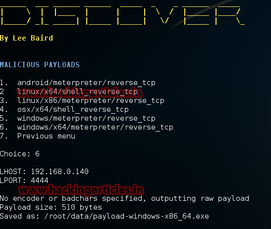 Again it will show you various options payloads. In my case I am selecting option 6 and press enter