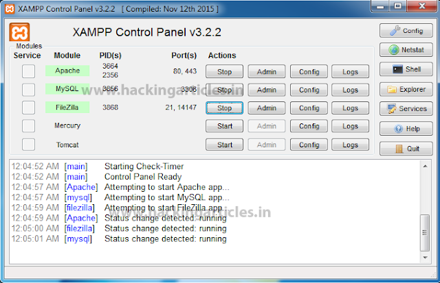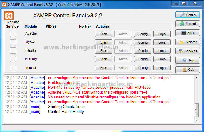 First install you xampp in windows. After which you should find a control panel as shown below.