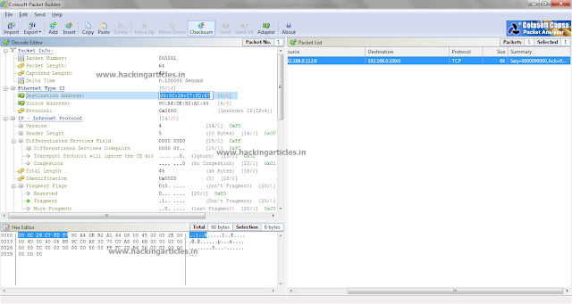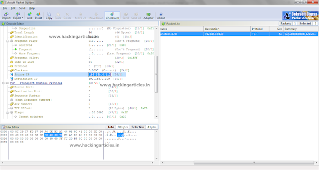 Colasoft Packet Builder enables creating custom network packets that allows you to perform DoS attack in a Local Area Network.