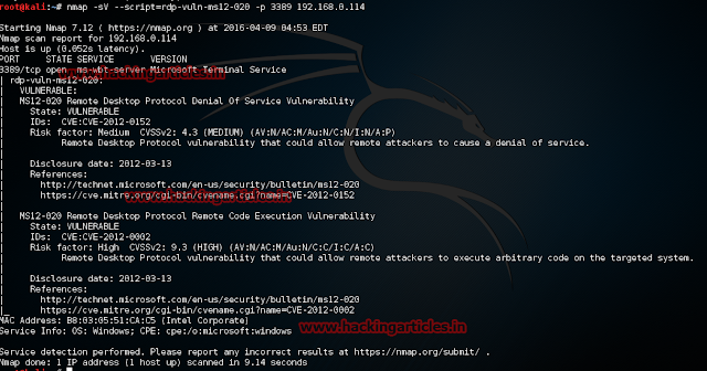 nmap -sV --script=rdp-ms12-020 -p 3389 192.168.0.114