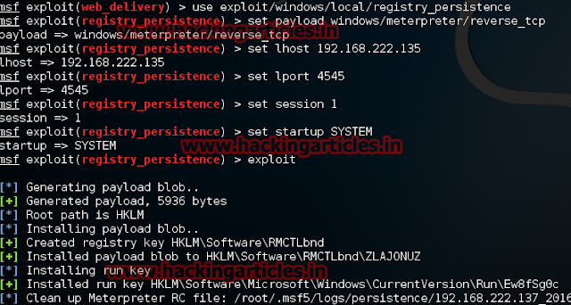 Now type use exploit/windows/local/registry_persistence