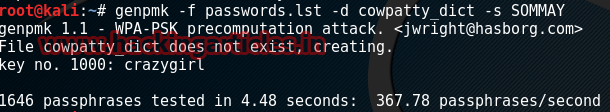 genpmk -f passwords.lst -d cowpatty_dict -s SOMMAY