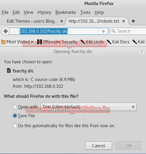 Once we open the said dictionary file in the browser, it asks us to download it. Going ahead we downloaded and opened it. It is a file which may contains username and passwords.