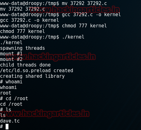 Now, we have over the downloaded file and compile it and then run it so have the control of root. To do so, commands are: