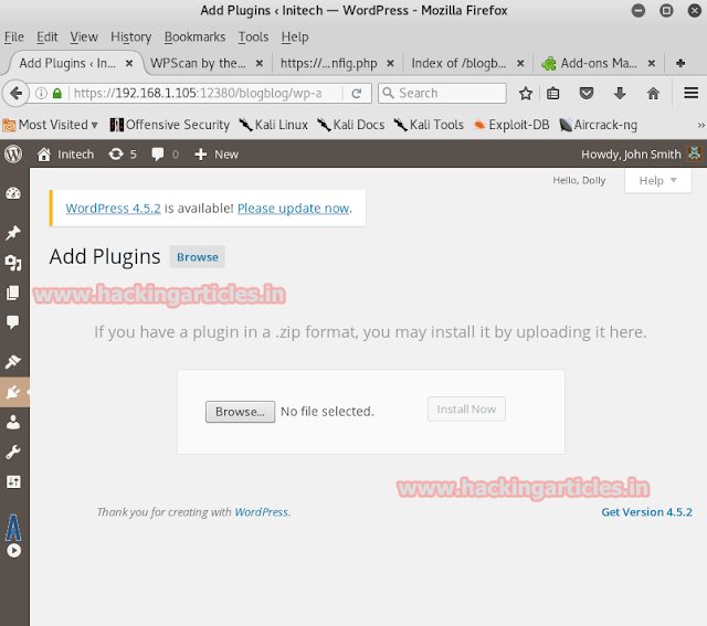 Now, as we already logged on, go to plugins option then select add plugin option. Click on browse option and select the PHP in which you have just saved the code and click on OK.