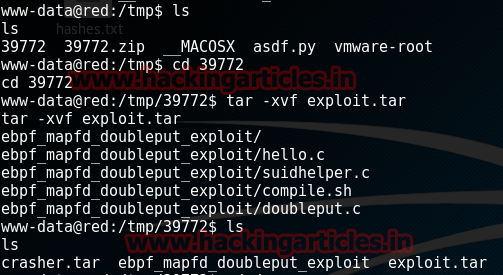 Now use the ls command to view the directories. Now we will go into the double put-exploit folder and for that type: