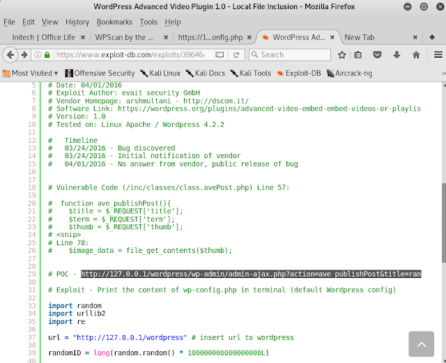 Completing the scan and we found one plug-in i.e. advanced video plug-in and we searched for its exploit on www.exploit-db.com and found one exploit for it