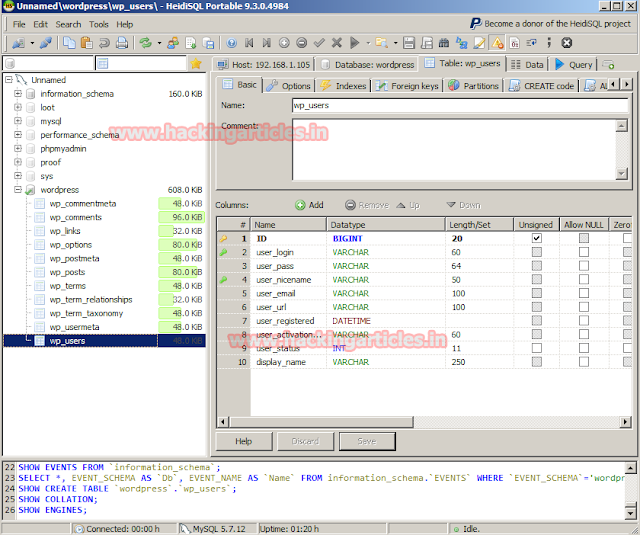 This provides us with the username and password of MYSQL. To enter the MYSQL database we will use third-party tool called HeidiSQL_9.3_Portable.