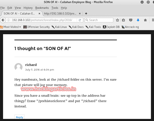 Now this spankyword can we our password so if we open the URL : 192.168.0.102/prehistoricforest/ and open one of the comments then it will ask you for the password. So, give the password as spanky.