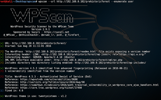 wpscan --url http://192.168.0.102/prehistoricforest--enumerate user