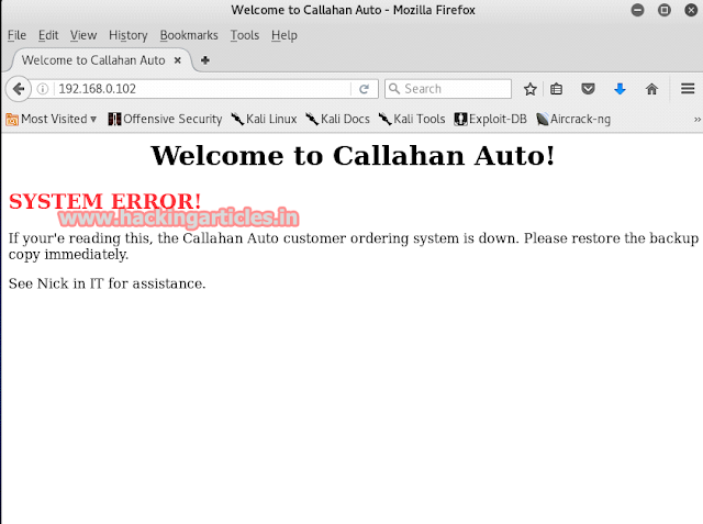 To further explore and find rest of the flags we browsed to port 80 and we greeted with the Callahan Auto page which apparently was experiencing some technical difficulties.Now, as we were stuck there, we thought about using the curl command. As we all know it provides us with a library and command-line tool for transferring data using various protocols along with so much of detailed information which can we used on various occasions. To use curl type :