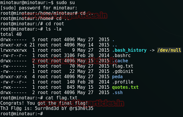 Now in the flag we found another flag along with a hint indicating that the flag is minotaur. Now we will log in throughSSH using minotaur :