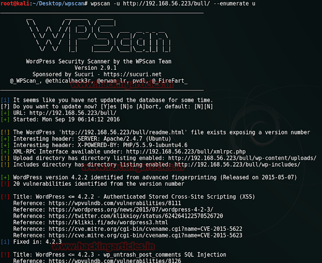 wpscan -u http://192.168.56.223/bull/ --enumerate u