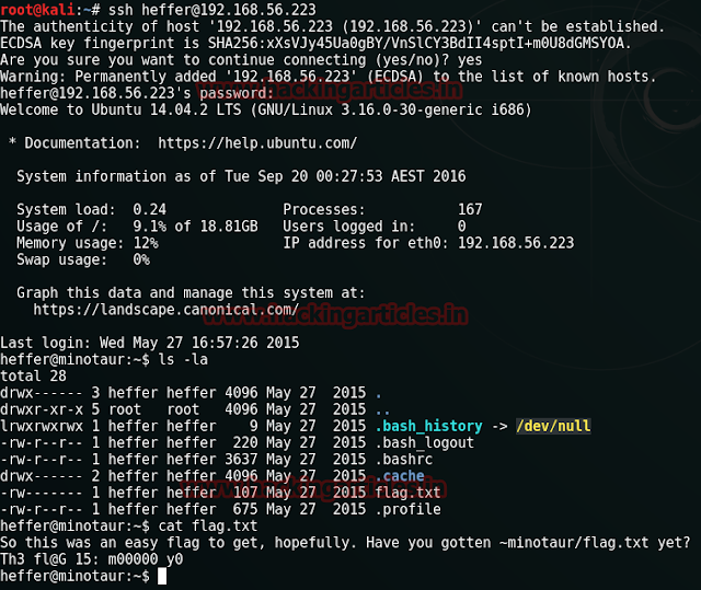 ssh minotaur@192.168.56.223