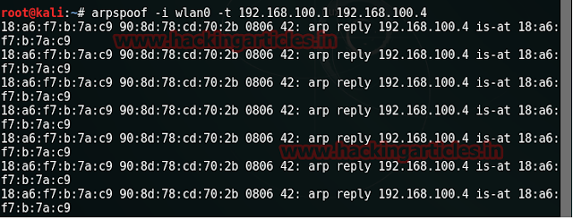 arspoof -i wlan0 -t 192.168.100.4 192.168.100.1
