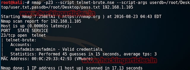 userdb=/root/Desktop/user.txt,passdb=/root/Desktop/pass.txt 192.168.1.105