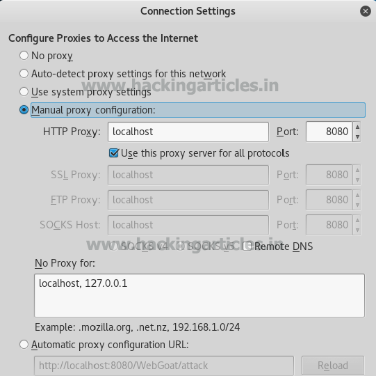 A dialogue box will open and from it select Manual Proxy Configuration. As you have selected this, you can either keep the http proxy as localhost or you can set it to 127.0.0.1