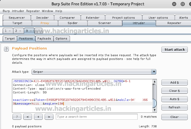 Now in the intruder tab select options tab. It will show you the details of the traffic that is the number to which the SMS was destined to and the text message.